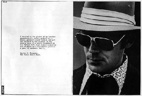 of course, i'd like to use the REAL foto of HST that includes the cigarette. maybe works some selected lines from his work and a few lyrics from tom ... probably