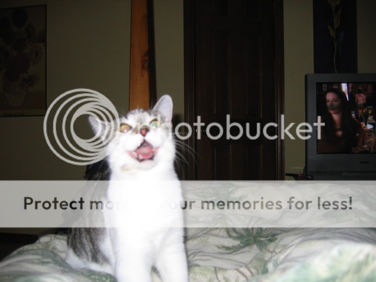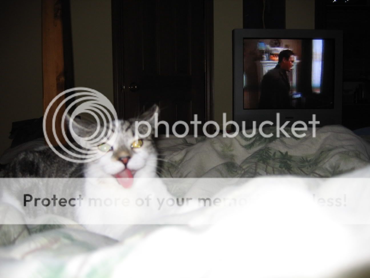 Ok check this pic out... my cat Lucy, she is soooo funny. She chases after a feather on a stick with a bell and she gets soo crazy she pants like a dog its HILARIOUS... Poor thing. Then when she catches it she carries it around the house in her mouth dragging the stick behind her..