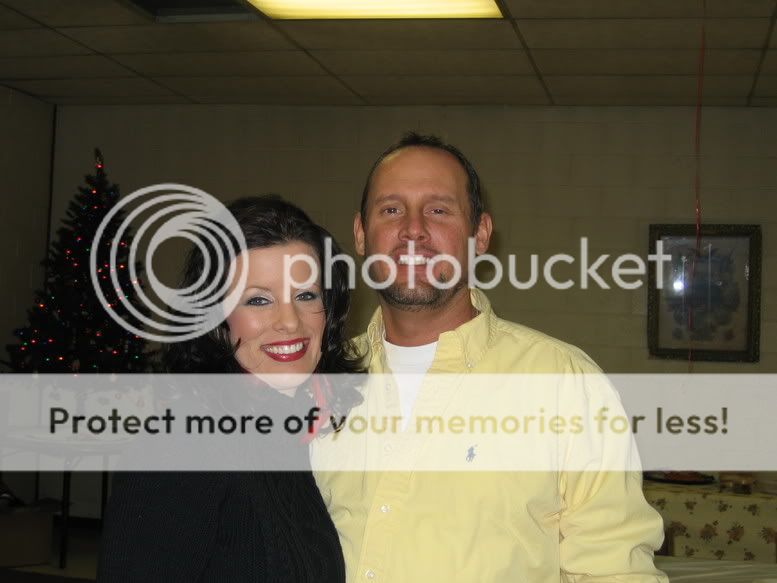 Here is mike and i and the family christmas party... We had made a wager on how many people in my large family would say something about my new Hair... it wasnt tooo bad.. other than my uncle sayin "Oh you used to be soooo pretty"...