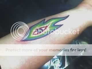 anyway, yesterday was a painful day because after finishing several hours of being inked up i rolled my ankle while working at the Hot Topic, so im all beat up and sore today lol