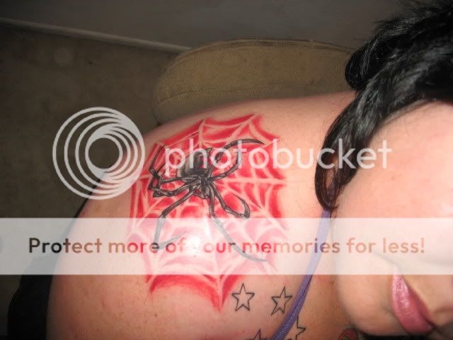 Saturday Nov 11, 2006 Nov 11, 2006 0 Facebook Tweet Email Ok, here we go....fresh ink....the smell of the tattoo shop is addicting, along with the sound of the needle....I just can't get enuff.... It is her highness the Black Widow...with old school web.... VIEW 24 of 24 COMMENTS misterclean: nice!!!!!!!!!!!!!!!! Nov 16, 2006 moli: The new piece looks amazing. I love the sound of the tattoo needle Nov 17, 2006