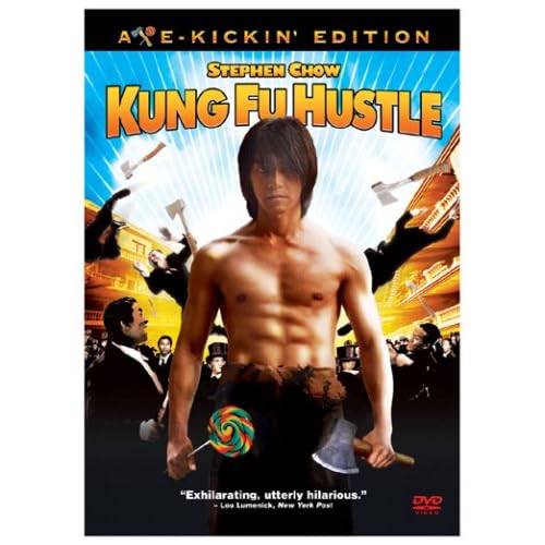 Among them are the KUNG FU HUSTLE AXE KICKIN EDITION which has all the blood and poop that was cut from the gay american version.