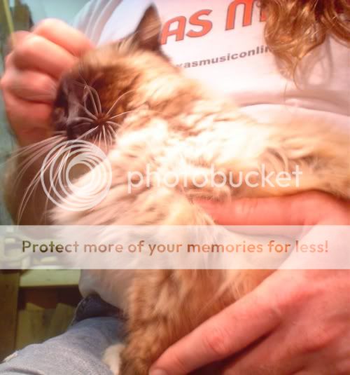 I was blasting OK Computer at an authoritative volume level, and when it was over I heard this pathetic mewling outside. I opened the door and there was Goofy, trying her best to convince me that the coyotes were coming to get her, so I picked her up and brought her in and we had a thorough scratching session...