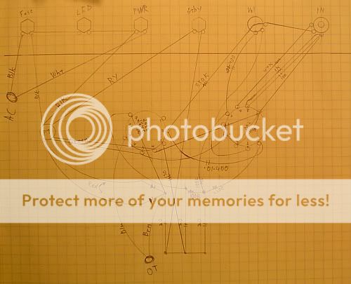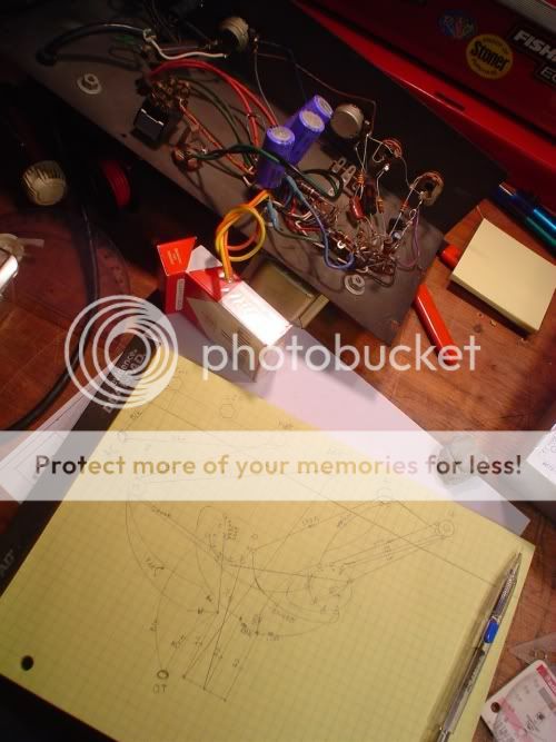 I copied the circuit layout of my Kalamazoo amp onto paper last night. This circuit will be the basis of the custom amp I'm building for my friend in New Orleans. The simplest possible circuit for the truest, rawest, most honest tone.