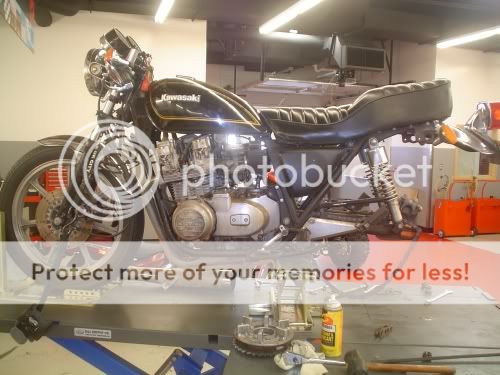 I walked into the back area, where customers aren't usually allowed (nobody said anything to me about it) and sorta hovered over the mechanic who was doing the work. Many mechanics might get annoyed, but this guy was entirely affable and quite friendly. I apologized for my bike leaking oil on his lift, he wasn't the least bit concerned about it. I offered to lift the rear wheel so he could push the axle through, he cheerfully declined. Then he started telling me about his old KZ, hahahaha!