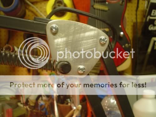 So I started cleaning the shop, organizing my workbench, getting things in place to pick up where I left off with the custom amp project. One thing that's been bothering me for some time now is my desk lamp. It's one of those with the big magnifying lens on an articulated arm. The fucker kept sagging and wouldn't stay in place. I traced the problem to the plastic side plates for the elbow joint: