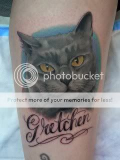 i have to thank the lovely 10eisha for having this girl get these cat portraits from me. they were real fun, and she was really nice. and tough, too... she got one cat on the inside of her calf and one on the outside, in one 5 hour sitting. i guess "gretchen" is a little brain damaged, and she said i did a good job capturing that, hahahahaha.