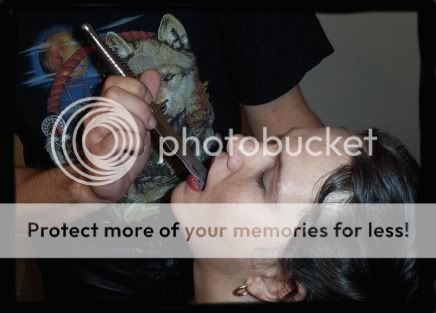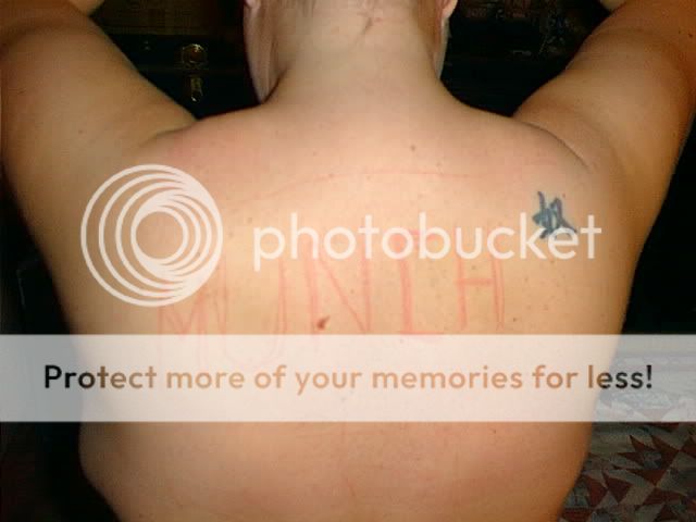 Once you feel confident that you have mastered the beginning stages, and can stripe your partner so that he or she looks like a tiger or zebra, consider moving to the next step. By now you will have acquired a variety of blades. Choose a small and wickedly sharp one. Razor sharp. Experiment first on yourself once again. Make a line on your thigh, that will produce a nice clean welt. Lay the large knife aside. Now, using the small blade, make tiny scratches at 90 degrees to the welt line, that will draw a little blood. The cuts need go ONLY into the welt itself, NOT the skin on either side. Hence the need for a small sharp knife, or you WILL cut too far. I find it handy to use a short bladed knife, and to hold it as one would a pencil for this. PLEASE don't give into the temptation to use an exacto knife or a carpet knife...You cannot get them clean enough. Wrap a longer blade with a few layers of sterile bandage tape if you need to to protect your hand from the cutting edge. These cuts will bleed freely, and seal themselves quickly after having done so. Still it is possible to have your partner's back or thighs, or wherever you choose, to become awash in the sheen of red. The secret is not to make deep cuts to flow the blood, but instead to make MANY tiny ones each producing no more than a few drops. On a personal note, I have always found the climax of such a scene, to be the point where I take some of this red nectar from my partner... (yes, life's partner) into my mouth, returning it to her in a kiss. It's something I would recommend only for those who play exclusively together, and have no other partners. Once you have completed your session, take the time to cleanse your partner's body. Wash with antibacterial soap, and finally, take care of your tools before putting them away.