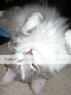 It was so cute, even when she was so sick today, she would still do the kitty smile to me... you know how kitties squint their eyes at you when you talk to them? Well, she did that earlier today & was alert & watching me tidy the living room... and she was purring while she ate today too & she was begging for tuna tuna tuna too.