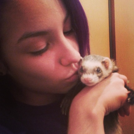 My Wednesday and Thursday were extremely tumultuous. I lost my little furry ball of love after putting her through surgery. :( I felt a lump in her stomach area on Wednesday, and took her to the vet immediately. They did x-rays and figured out that it as a mass. I took her in for surgery to remove the mass on Thursday night. The cancer had spread to her lymph nodes and had affected her liver. I decided to continue to remove the large mass, so I would at least get one last proper goodbye with her.. When they were stitching her up, she stopped breathing. It's been really really difficult for me. She was my first pet who was really mine. She helped my mum get through her battle with breast cancer since I had already moved away from home. It all happened so fast, too. I miss her so much. She was such a little bundle of joy. Even though she barely weighed a pound and a half, she brought a lot of light into the world. She also made me realize how little time we really have. She was about 5 or 6 years old, which is slightly young for her not being from a ferret farm/mill. I really wish I would've had more time with her. Rest in peace my little Ellie. I love you so much.... I will hopefully be getting her ashes back soon. I'm not sure what I want to do with them yet, but I'd like to do something special with them. I'm going to get a tattoo of her here soon once I recover from the financial burden her surgery was.
