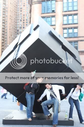 See my new profile pic? That would be courtesy of NewYorkMatt. Go swing by and tell him his photography rocks, and send him something real nice. And below, also taken by Matt, is me, Alexsandria, and Mle haning out in Union Square, just holding up a giant block. You know, normal day...