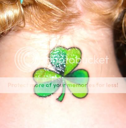 Other than that...I went down to Honky Tonk in Fredericksburg and got my first two tattoos on Saturday. The first was a small Rambaldi symbol on my hand (it's from Alias but it's a thing between me and Katii) and then I got a shamrock on the back of my neck. It's funny but the Rambaldi symbol hurt a lot more than the shamrock even though the shamrock is way bigger.