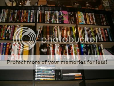 the other day we went to the 80's mall and bought a new shelving unit for our dvds...it was very much needed. we completly ran out of room. it holds over 500 dvds...it is pretty much half way full.